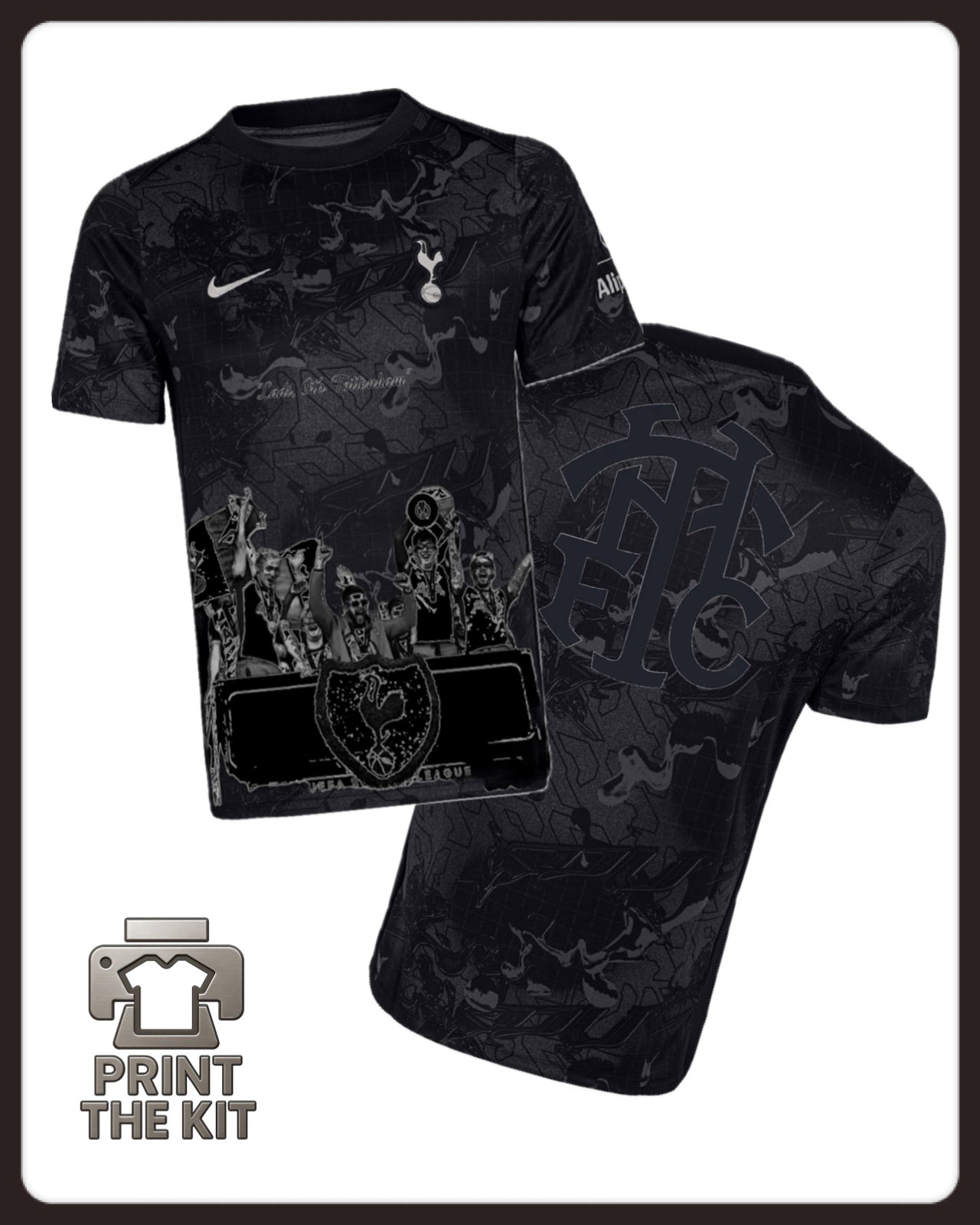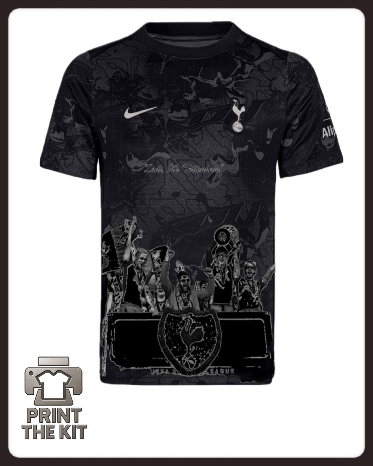 A bold, blacked-out masterpiece commemorating Tottenham Hotspur’s Europa League triumph, crafted for the fans who live and breathe North London pride.